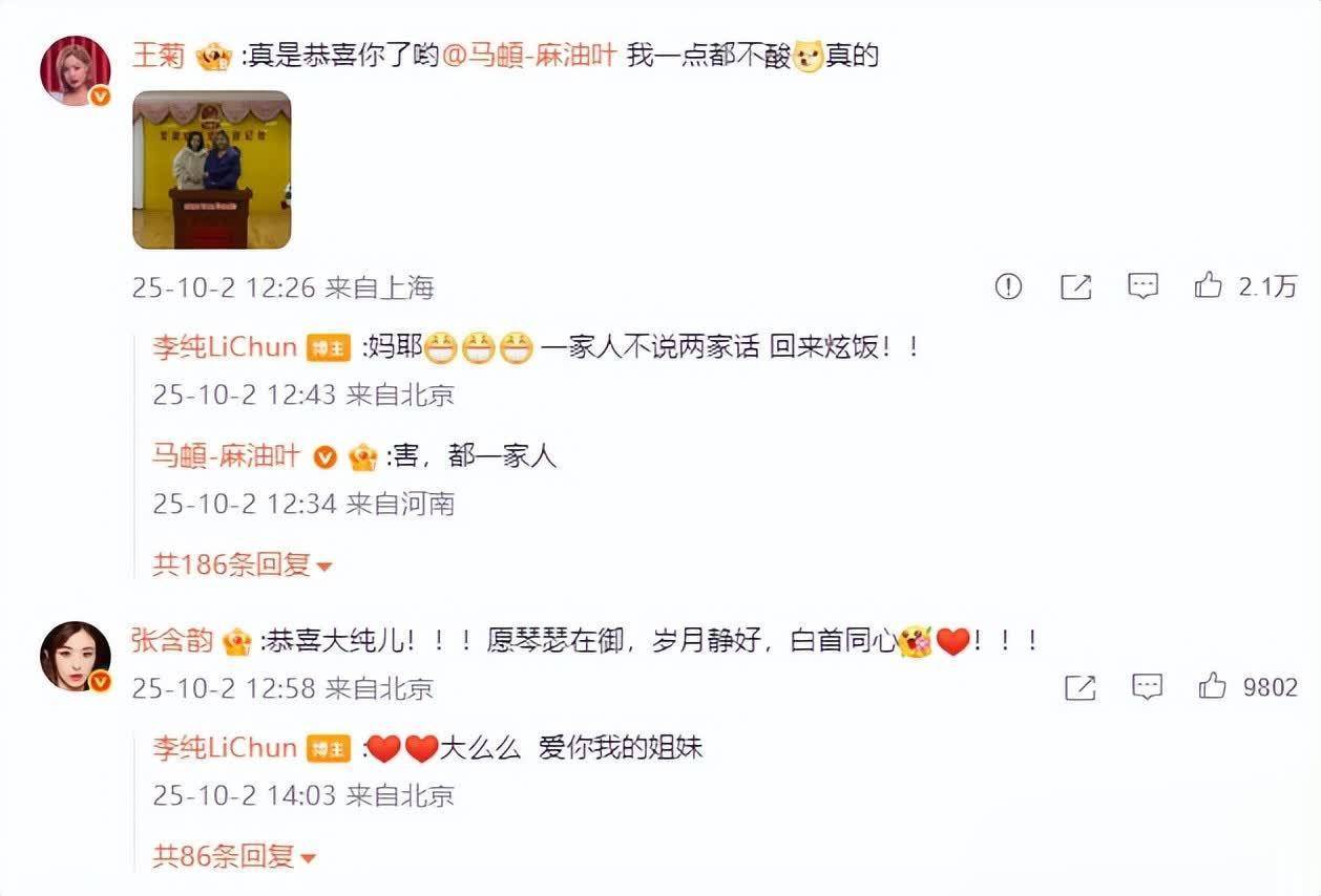 众人看到李纯和马頔结婚的消息,都在评论区留下了自己的祝福。